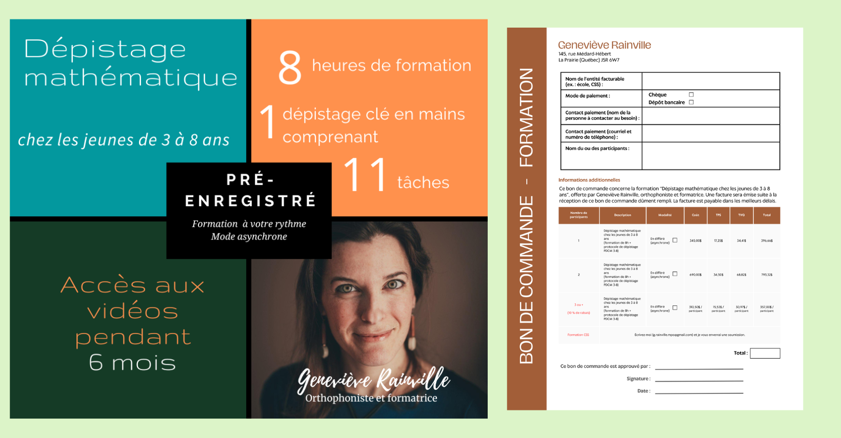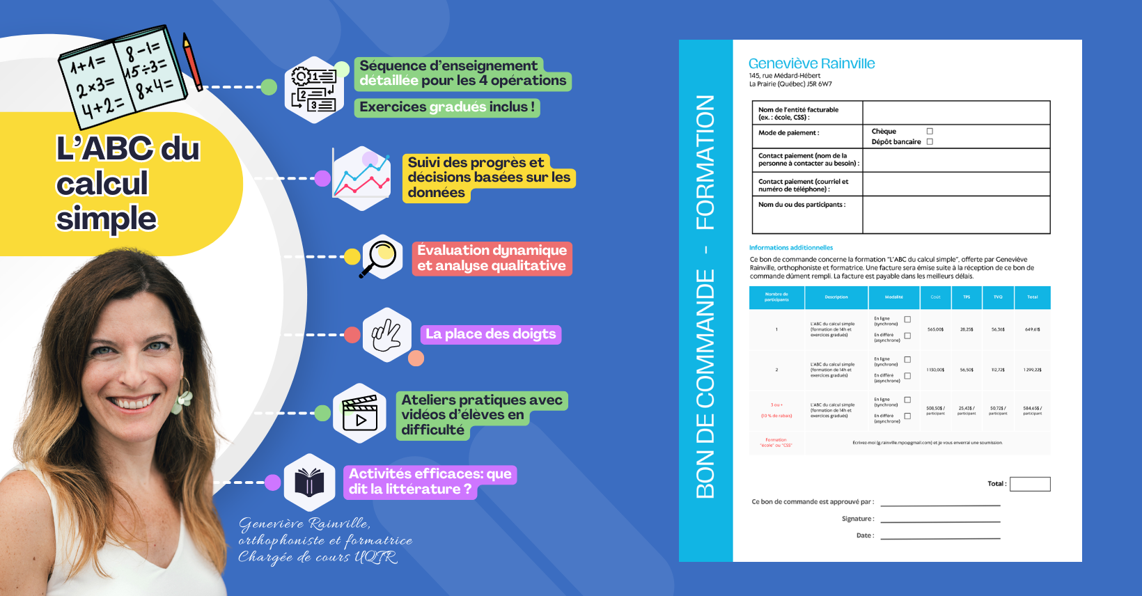3) Télécharger le bon de commande correspondant à la formation qui vous intéresse, le remplir et faire signer, puis m'envoyer le tout (g.rainville.mpo@gmail.com). Sur réception du bon dûment signé et autorisé, je pourrai produire une facture et vous donner accès à la formation souhaitée.